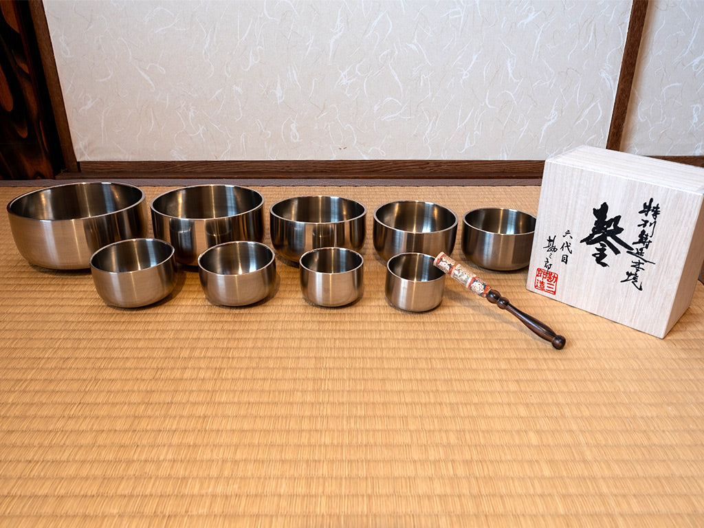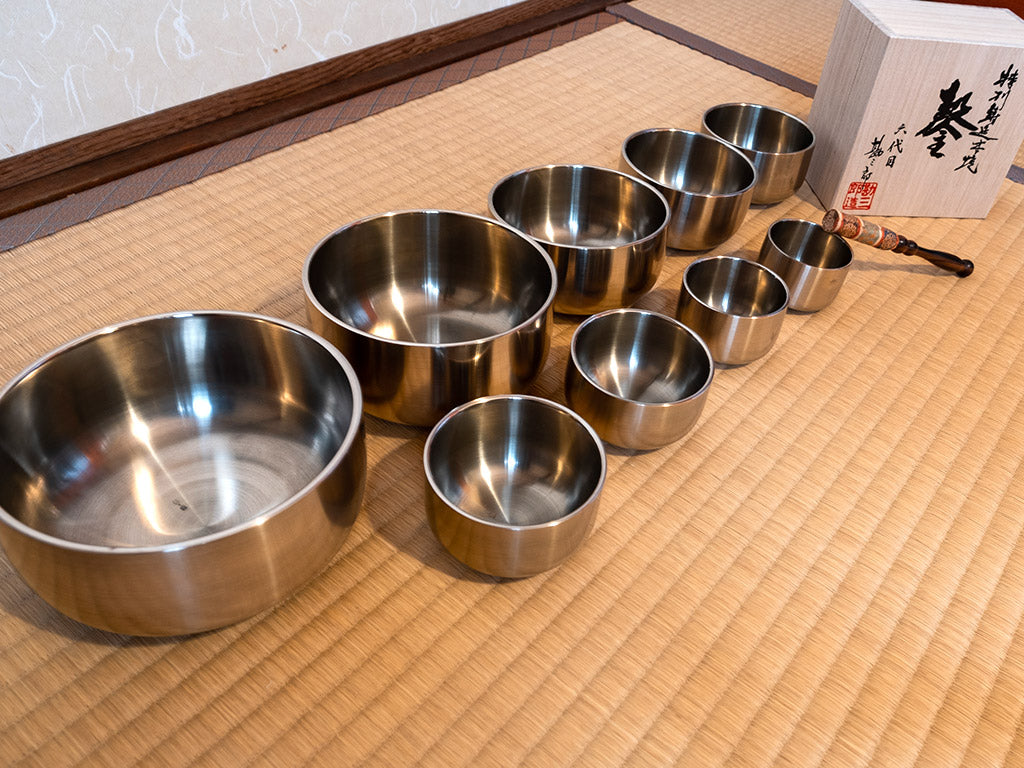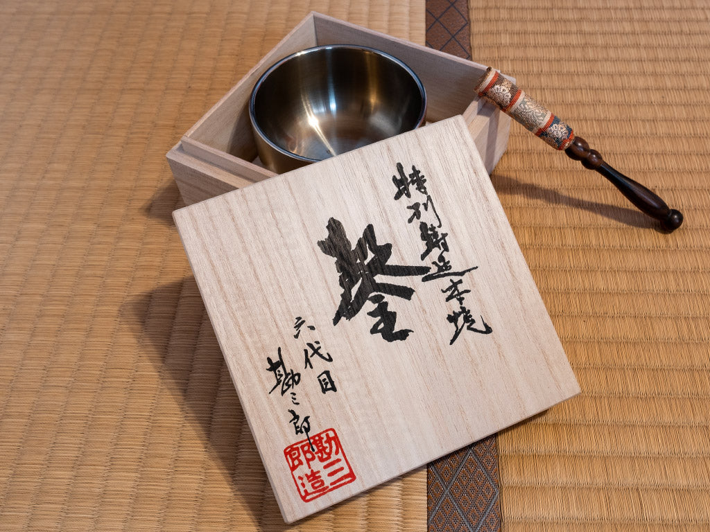 All the spirituality of sound and Japanese craftsmanship are embodied in these magnificent "Orin". These traditional Japanese musical instruments used in Buddhist temples and Shinto shrines have sometimes required dozens of recastings in order to obtain a pure and undulating sound, not found elsewhere. They are ideal for meditation, yoga, mindfulness, and well-being. Since 1839, the Nanjo Kobo foundry has supplied the temples and shrines of Kyoto, as well as the bells of certain parade floats from the famous traditional Kyoto festival, the "Gion Matsuri". The peculiarity of these singing bowls comes from the sound that emanates from them. As long as the sound is not pure, the goldsmiths’ hands reshape the metal called "sahari", a copper and tin alloy recipe handed down for several generations. From home, be ready for a spiritual journey away from the constraints of everyday life.